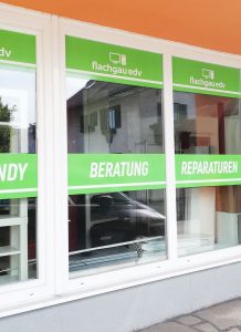 Schaufenster Gestaltung, Druck und Montage von Geschäftslokal KFZ-Beschriftung LKW-Fahrzeugbeschriftung